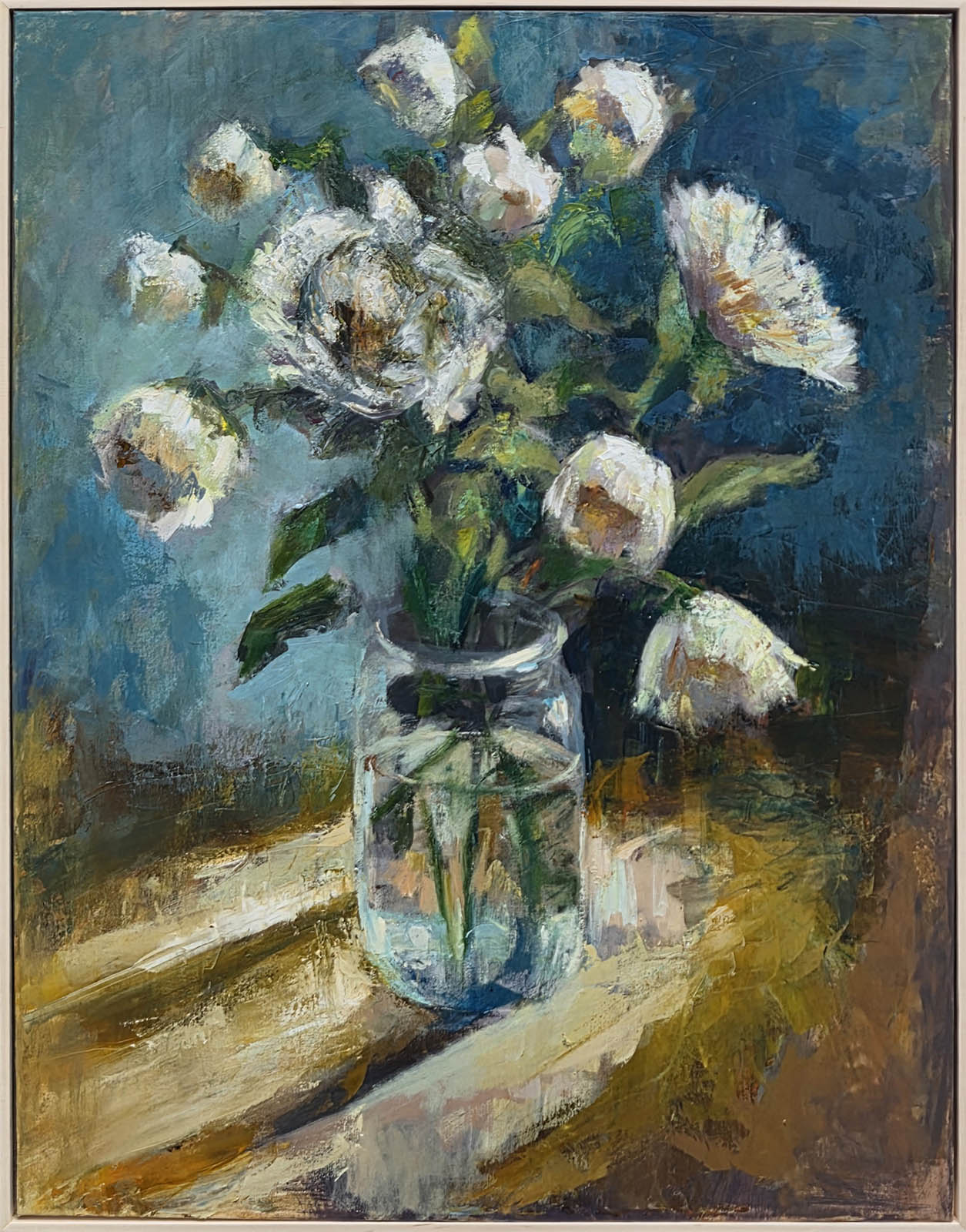 This painting was completed in April 2026. It is presented in a floating pine frame. The framed dimensions are 41 x 31 in.