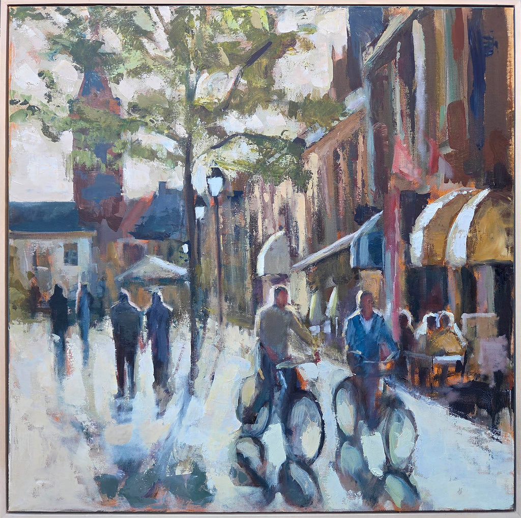 It is framed with a light wooden floating frame. Framed dimensions are 31 x 31 in.