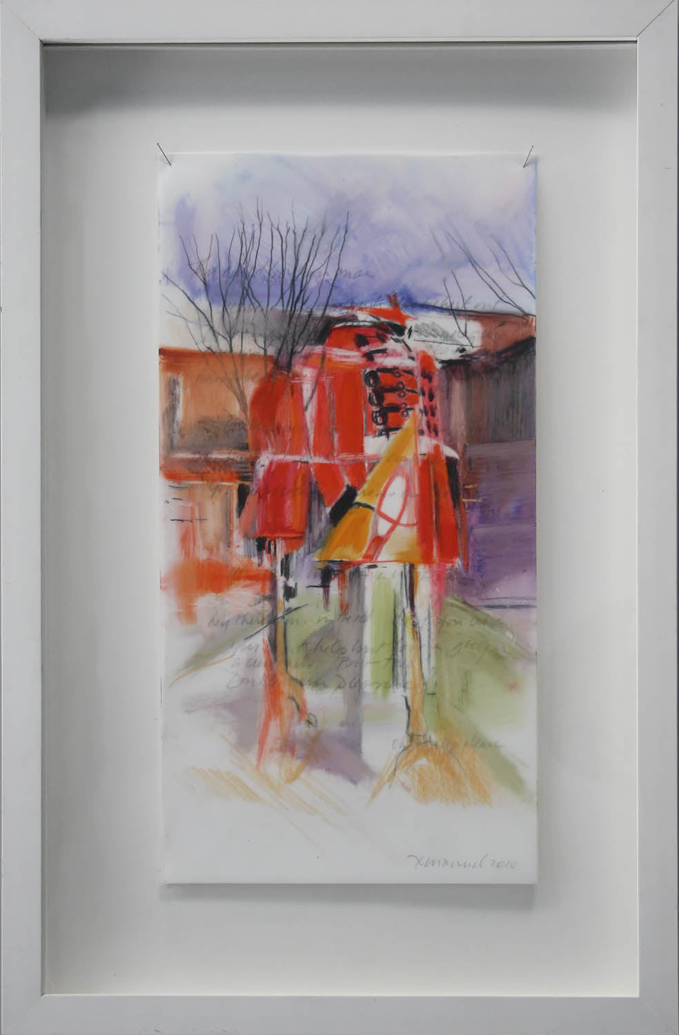 This artwork is made with oil and graphite on mylar. It was made in 2010. The framed dimensions are 19 x 12.5 in.