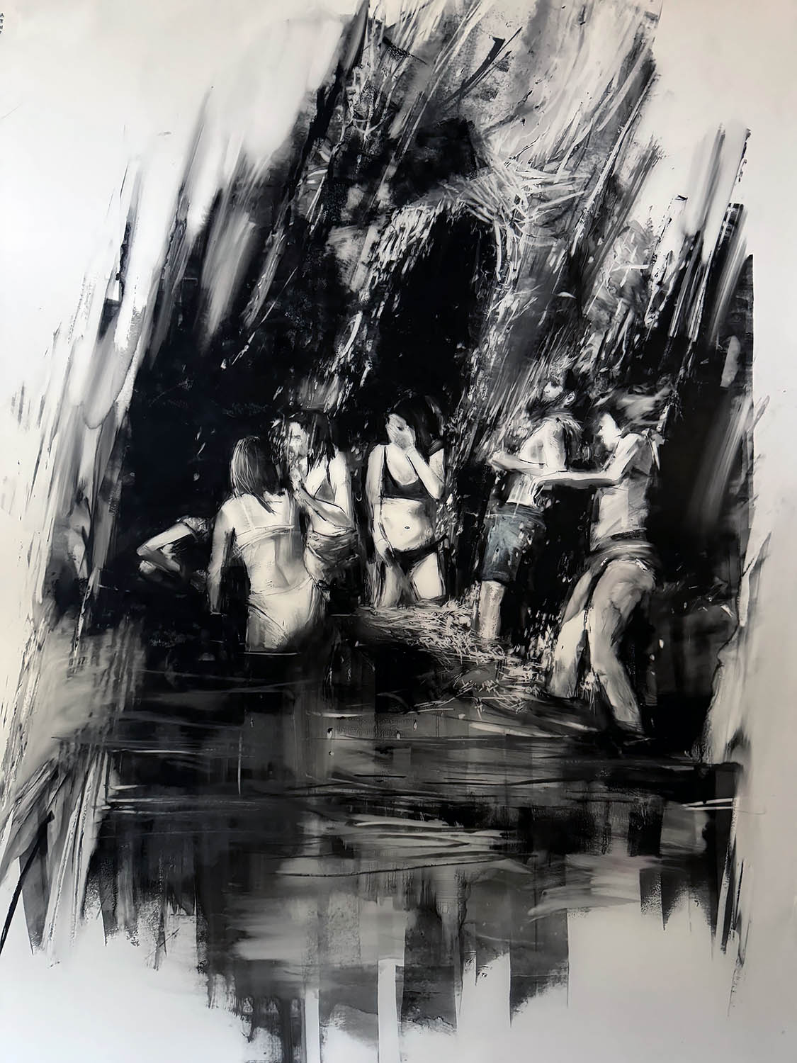 This artwork is made with ink on mylar. It was created in 2021. It is unframed.