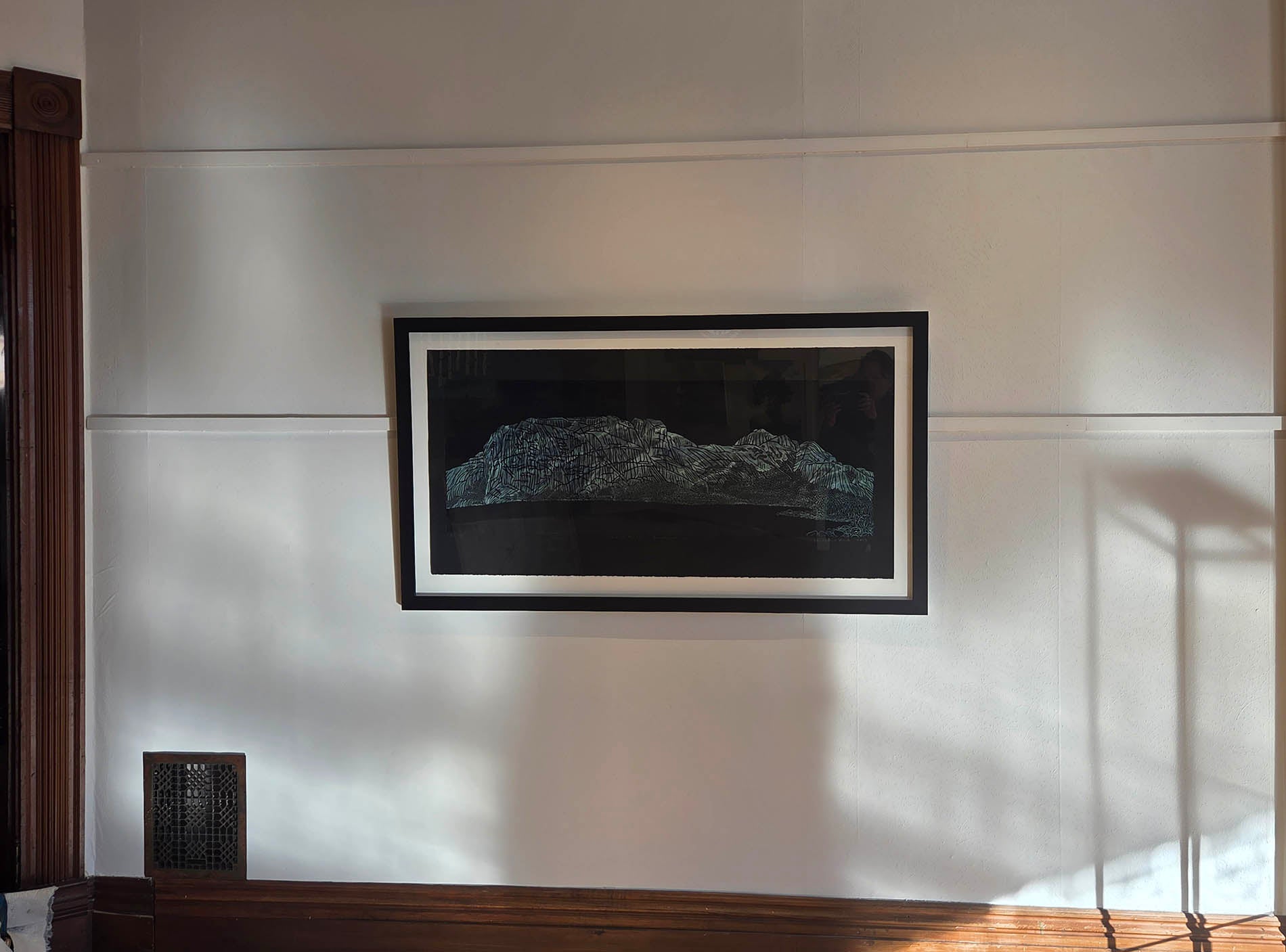 It was framed by Joy of Framing, Fredericton. The framed dimensions are 31.5 x 56.5 in.