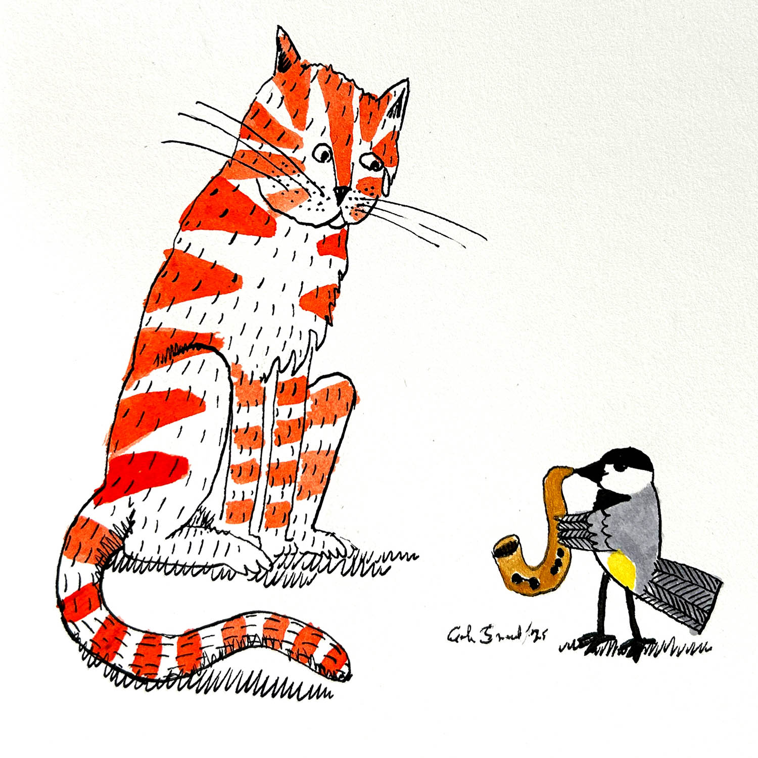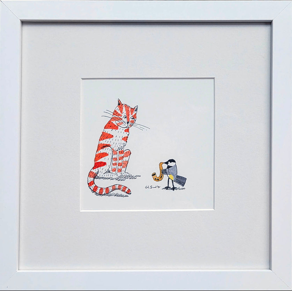 It has been framed with archival material and UV protective glass. The framed dimensions are 11.25 x 11.25 in.