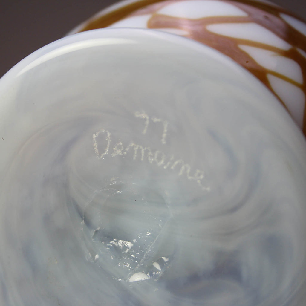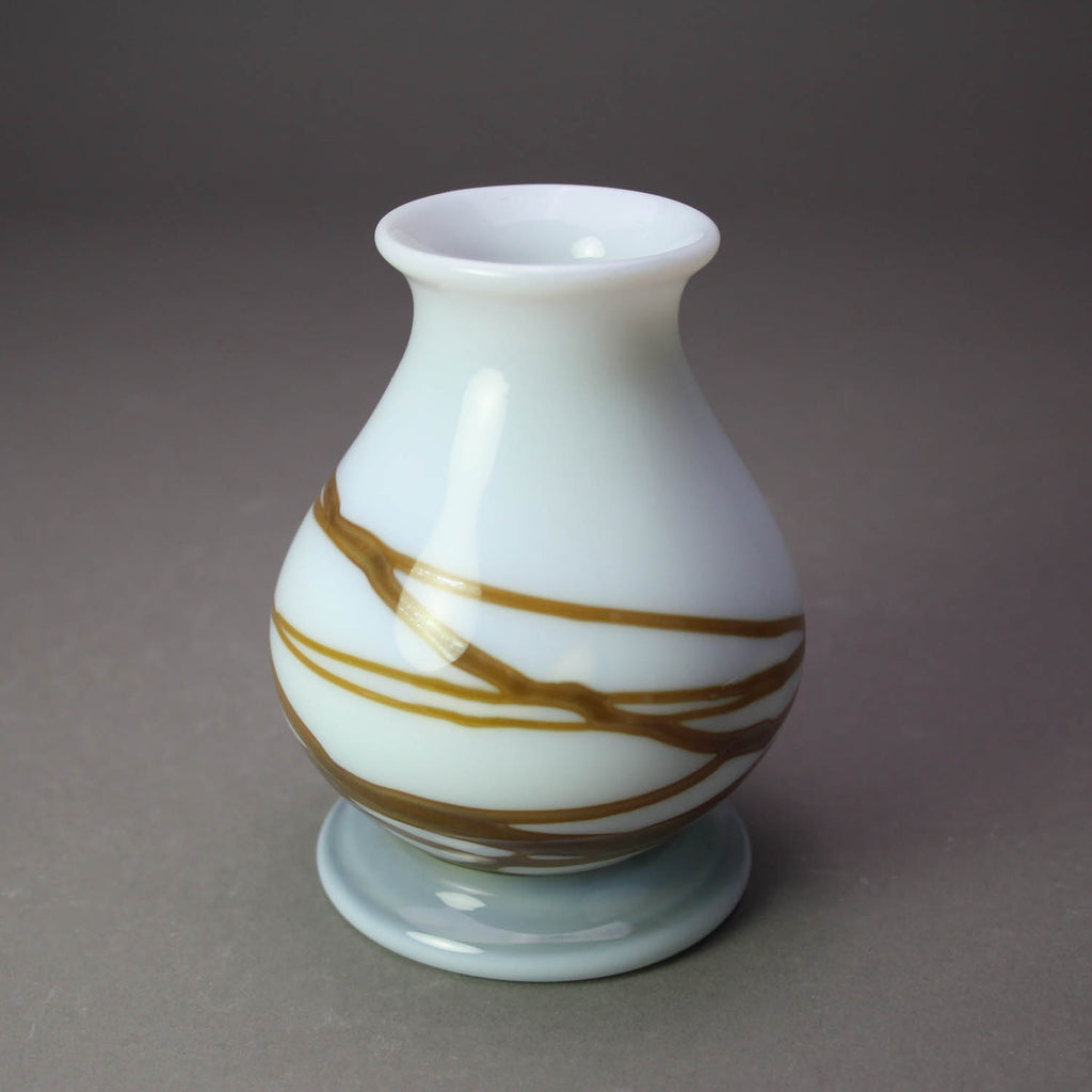 Milk Glass Vase with Stand, Brown Swirls