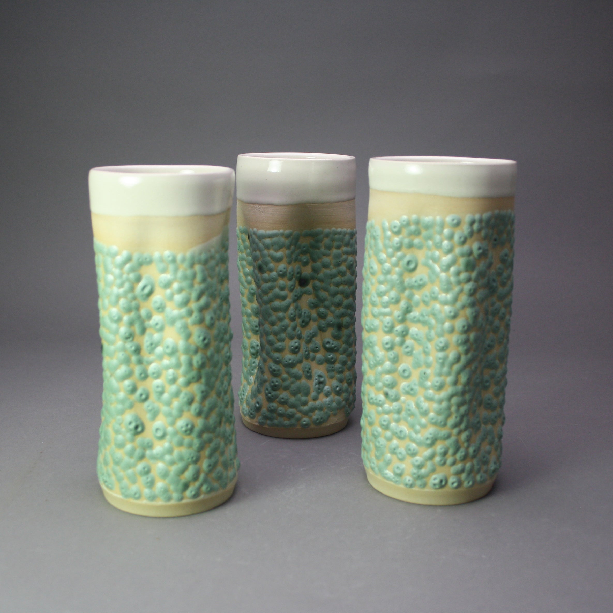 Vase: Green Crawl, White Clay