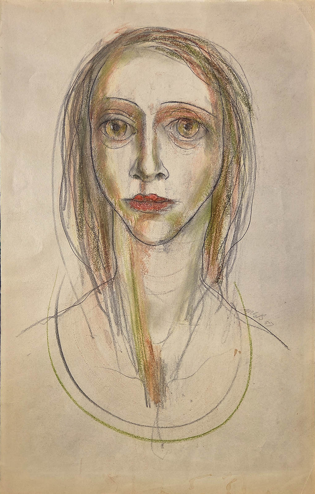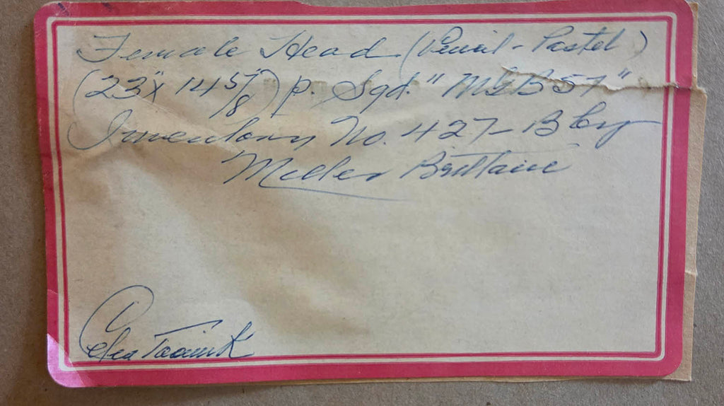 This drawing was created by Miller Gore Brittain in 1957. It is signed (initialed) and dated in the lower right hand corner. It also has an Estate label signed by Celia Toomik on the verso.