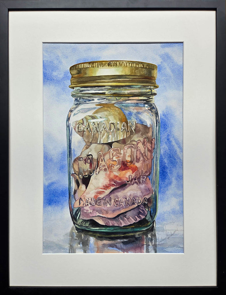 This watercolour was created in 2025. It has been framed with archival material and UV protective glass. The framed dimensions are 25 x 19 in.