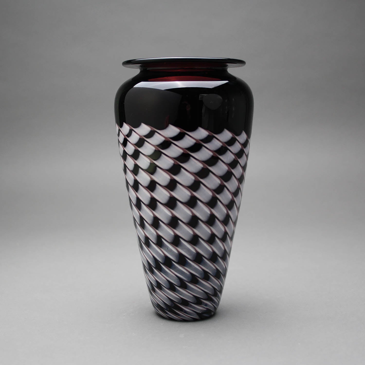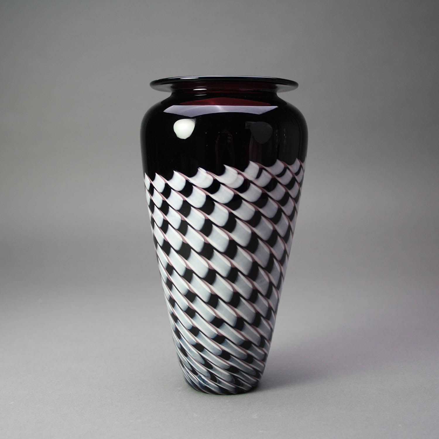 This glass vase was created in 1984. It is signed and dated on the bottom.